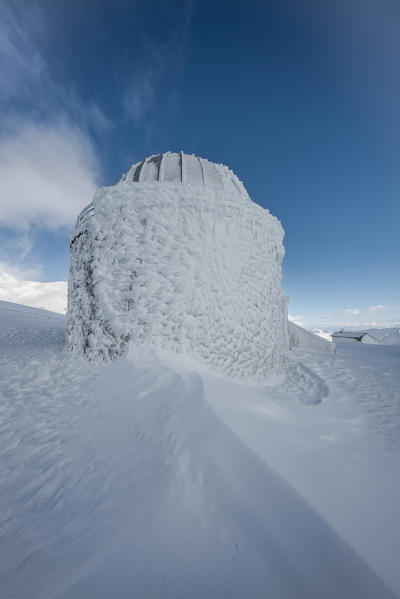Astronomical observatory covered with ice, Campo Imperatore, L'Aquila province, Abruzzo, Italy, Europe