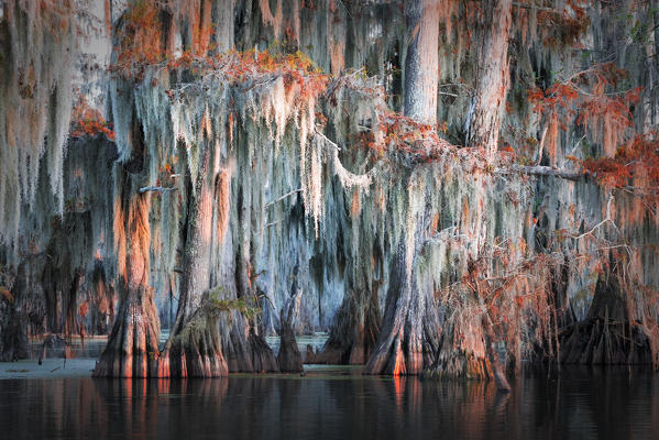 Bald Cypress (Taxodium distichum) in Lake Martin, Breaux Bridge, Atchafalaya Basin, Southern United States, USA; North Americaf