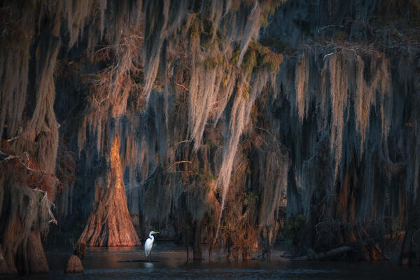 Great Egret (Ardea alba) in Lake Martin, Breaux Bridge, Atchafalaya Basin, Southern United States, USA; North America
