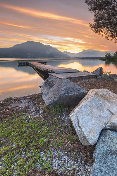 Foggy sunrise on Costamasnaga and Lecco mountains, Brianza, Lecco province, Lombardy, Italy, Europe