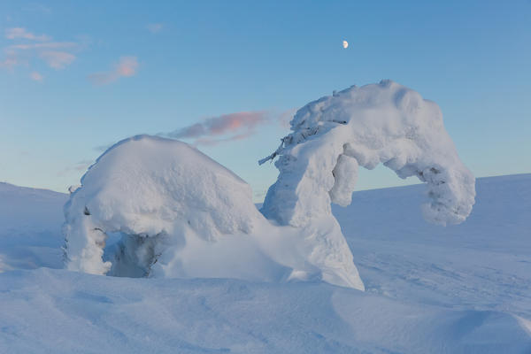 Lonely horse-shaped tree covered by the snow at Pallas - Yllästunturi national park, Muonio, Lapland, Finland, Europe