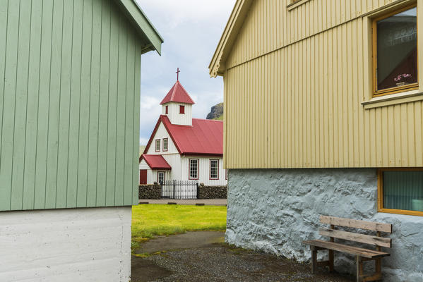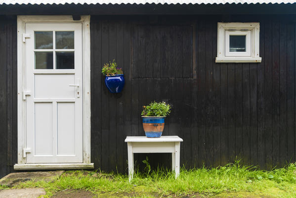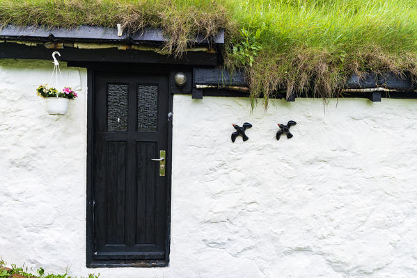 Traditional houses oceanfront, Mykines island, Faroe Islands, Denmark