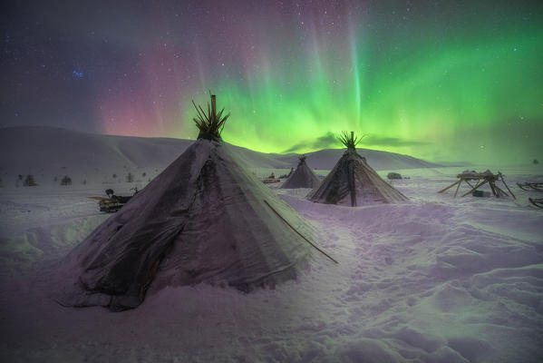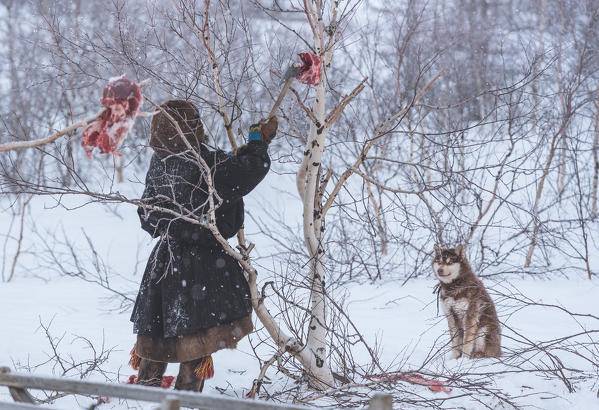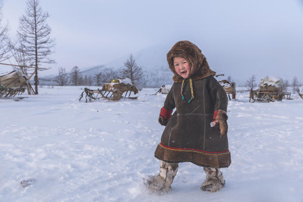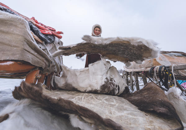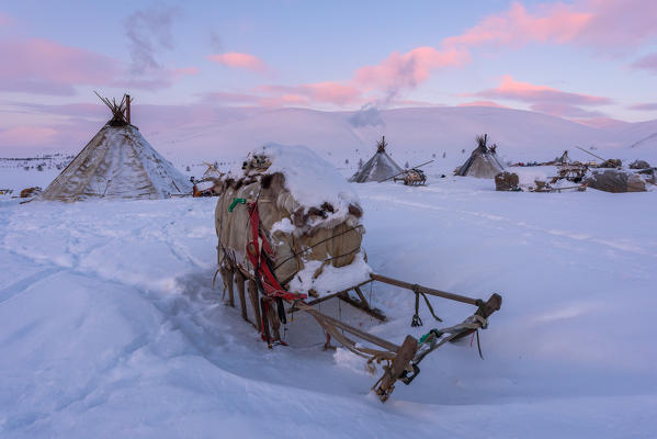 The winter landscape of Russian arctic circle near Kharp. Polar Urals, Yamalo-Nenets autonomous okrug, Siberia, Russia