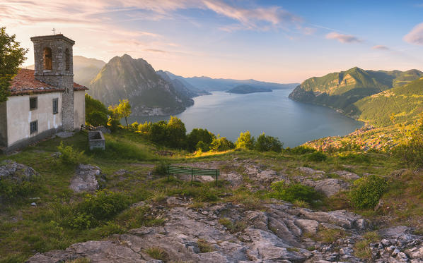 Iseo lake at sunset, Lombardy district, Brescia province, Italy.