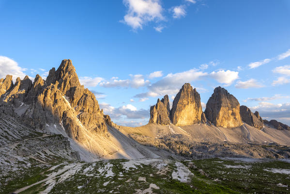 Sesto / Sexten, province of Bolzano, Dolomites, South Tyrol, Italy. Sunset at the Tre Cime di Lavaredo