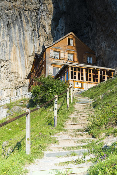 Aescher-Wildkirchli Gasthaus and outdoor restaurant at night, Ebenalp, Appenzell Innerrhoden, Switzerland