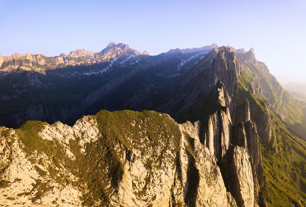 Elevated view of Aescher-Wildkirchli Gasthaus, Ebenalp, Appenzell Innerrhoden, Switzerland