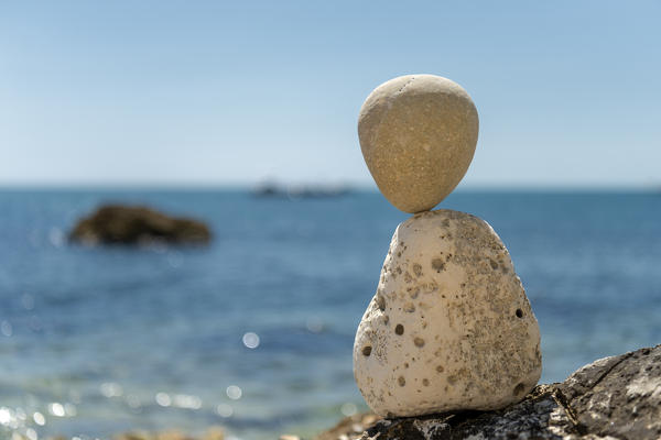 Sirolo, province of Ancona, Marche, Italy, Europe. On the beach of Sassi Neri (black stones)