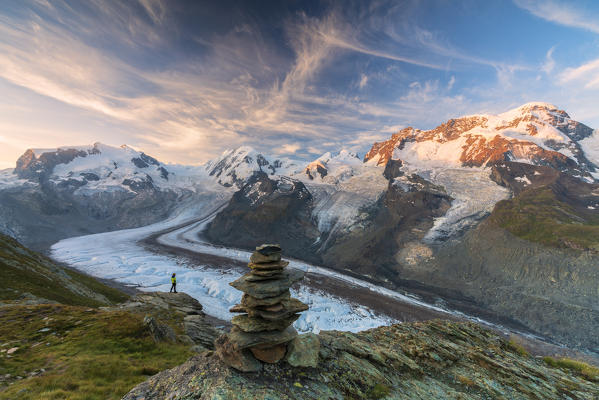 Monte Rosa glacier at dusk, Zermatt, canton of Valais, Switzerland