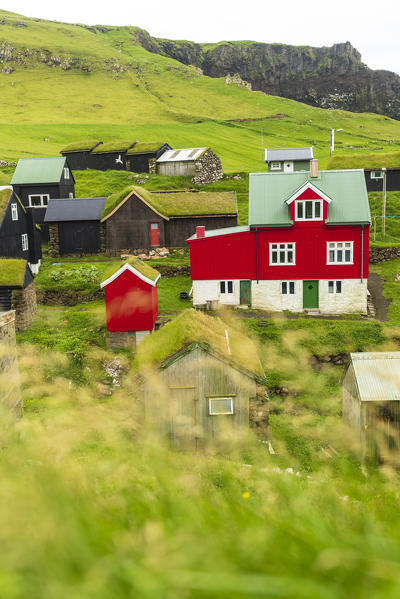 Traditional village of Mykines, Mykines island, Faroe Islands, Denmark