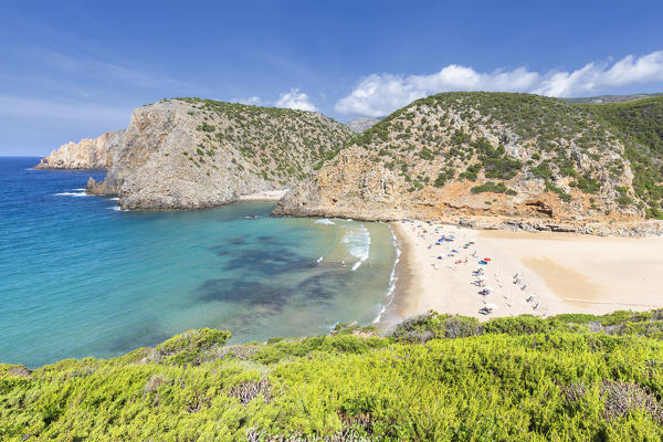 Beach of Cala Domestica from above, Iglesias, Sud Sardegna province, Sardinia, Italy, Europe.