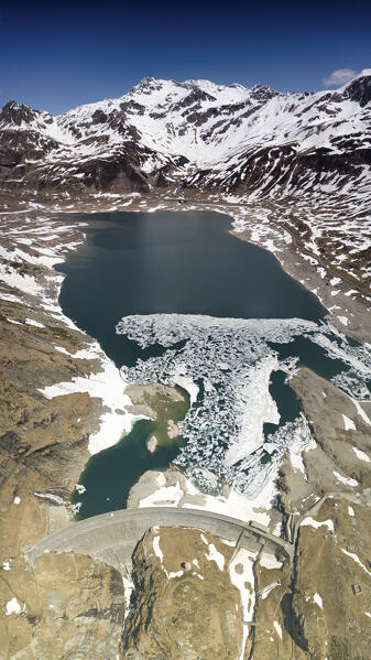 aerial view taken by drone of blue hole near to Madesimo with in background the Pizzo Spadolazzo mountain, Orobie Alps, Valtellina, municipality of Madesimo, Sondrio province, Lombardy district, Italy, Europe