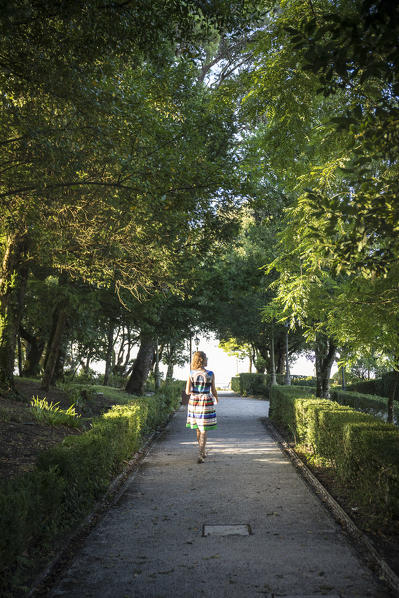 A girl walking in Erice, a small village near Trapani, Western side of Sicily, Italy