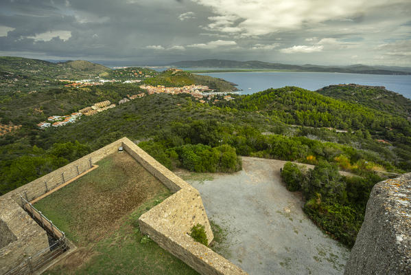 The bay of Porto Ercole seen from the Filippo fortress. Porto Ercole, Grosseto, Tuscany, Italy, Europe