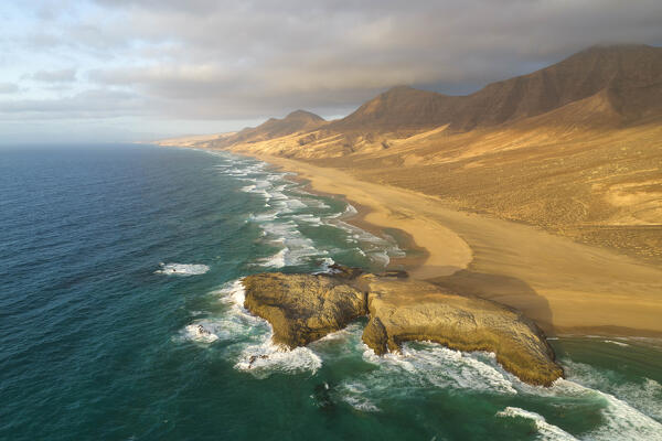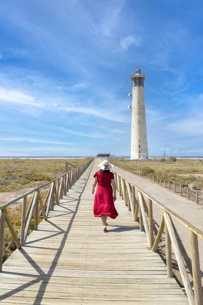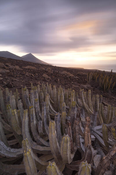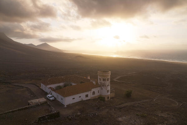 the warm light of the sunset envelope the Molino de Tefia during a summer day, Fuerteventura, Canary Island, Spain, Europe
