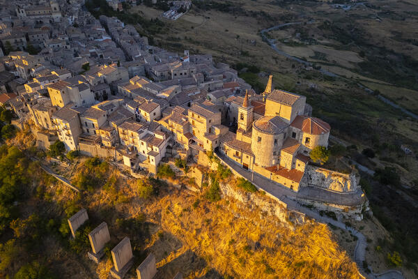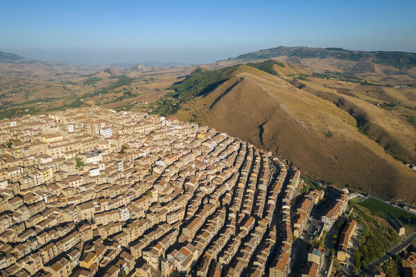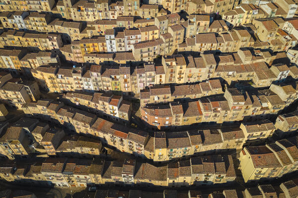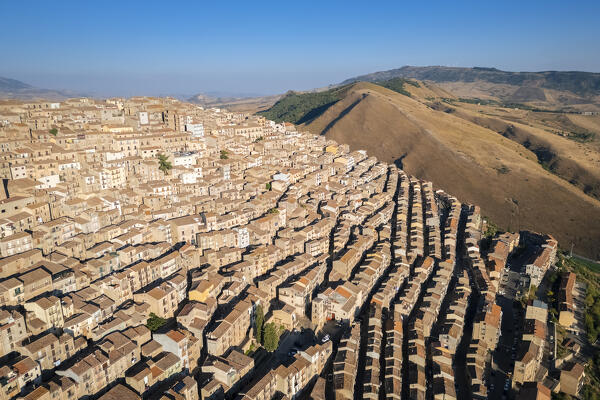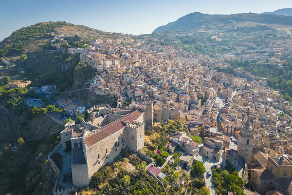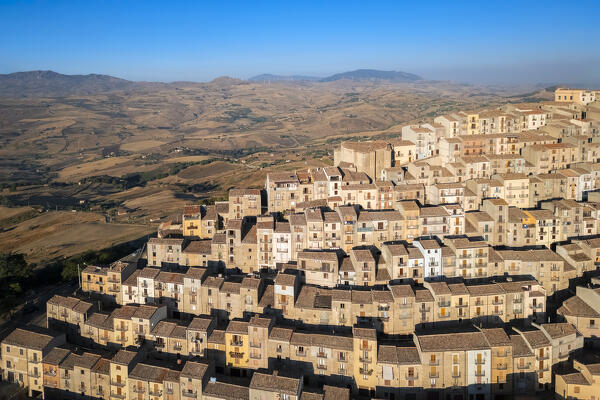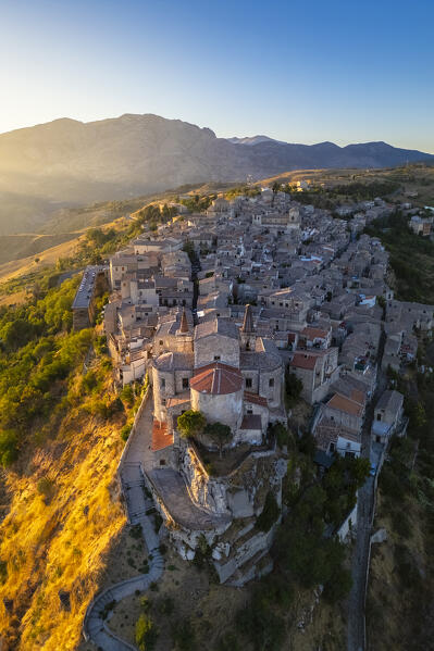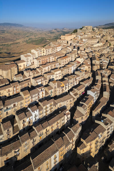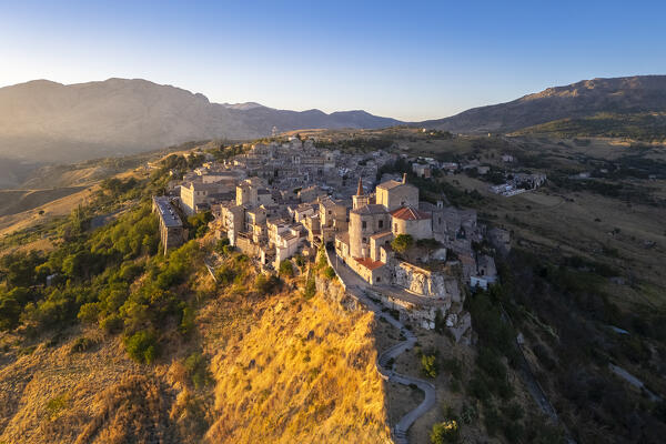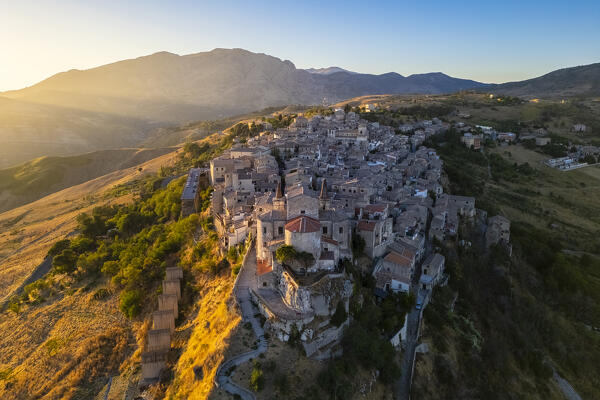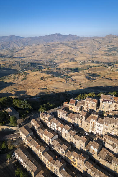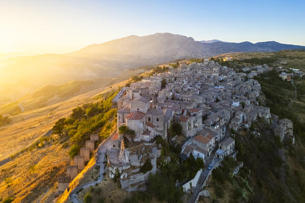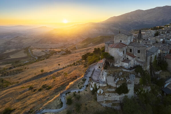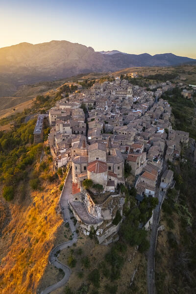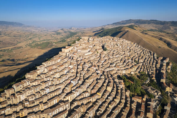 Aerial view of the ancient town of Gangi with its labyrinthic streets. Palermo district, Sicily, Italy.