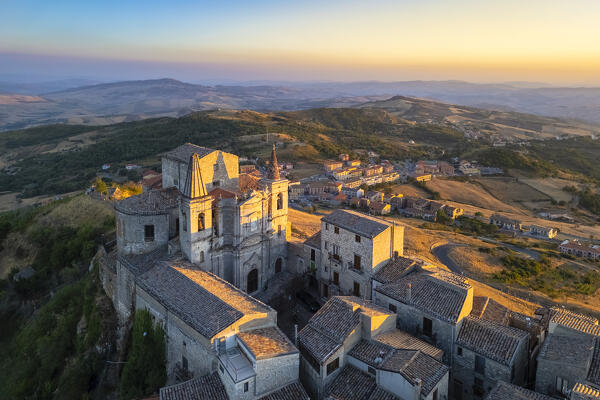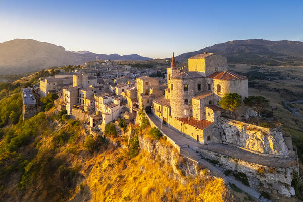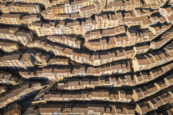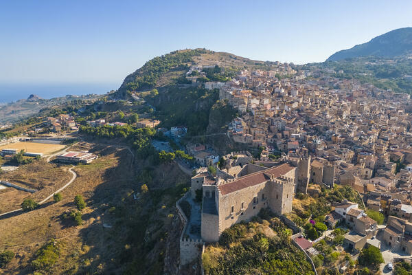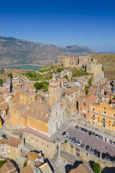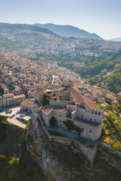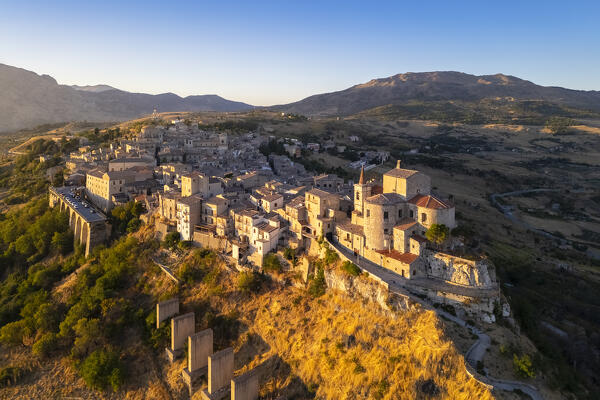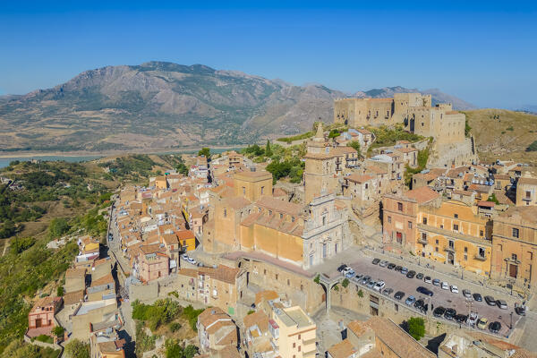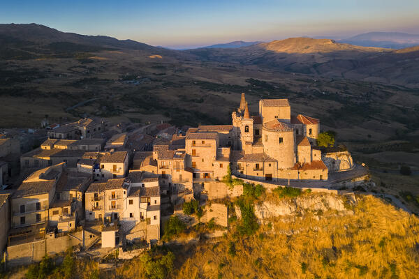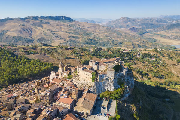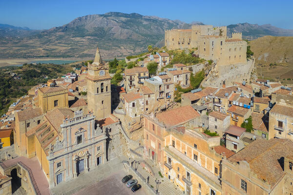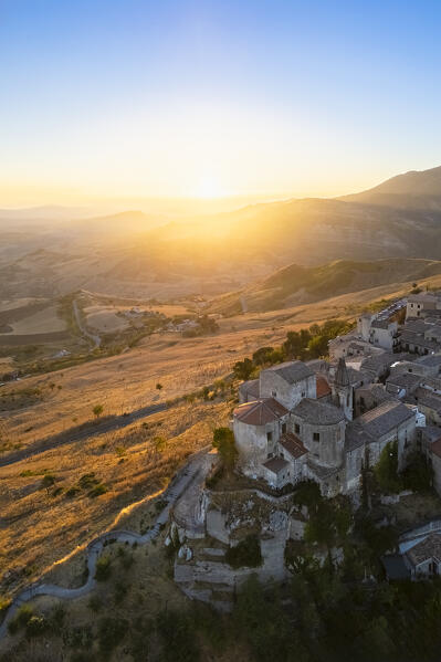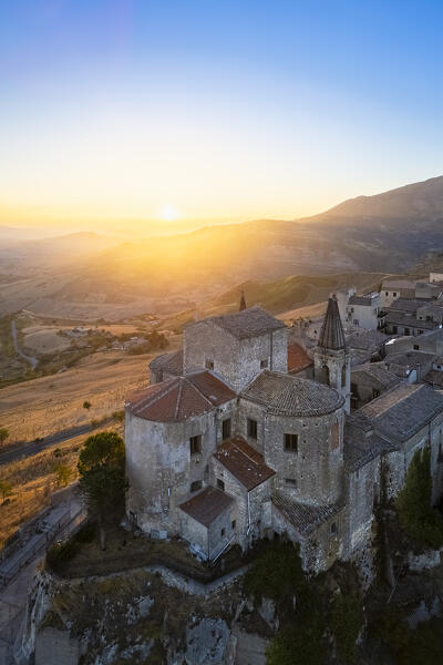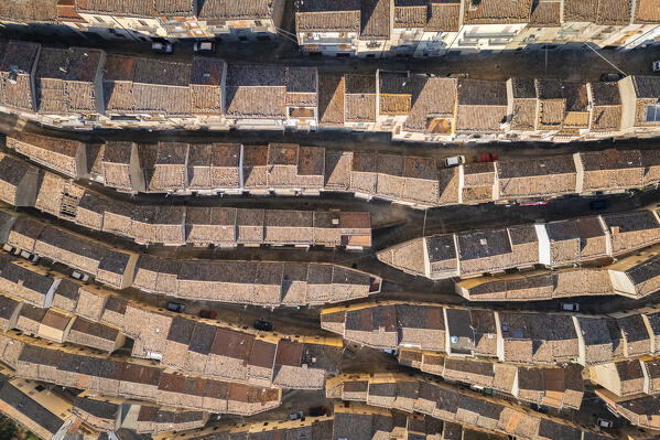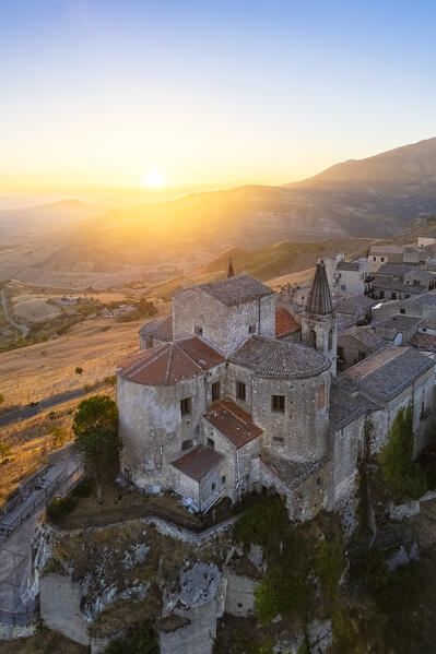 Aerial view of the ancient town of Gangi with its labyrinthic streets. Palermo district, Sicily, Italy.