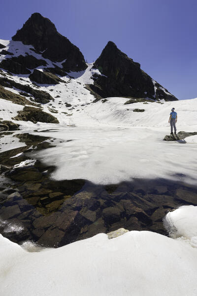 Monticelli lake in Stelvio national park, Ponte di Legno, Brescia province in Lombardy district, Italy.
